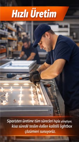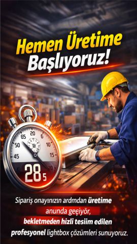 Sipariş onayınızın ardından üretime anında geçiyor, bekletmeden hızlı teslim edilen profesyonel lightbox çözümleri sunuyoruz.